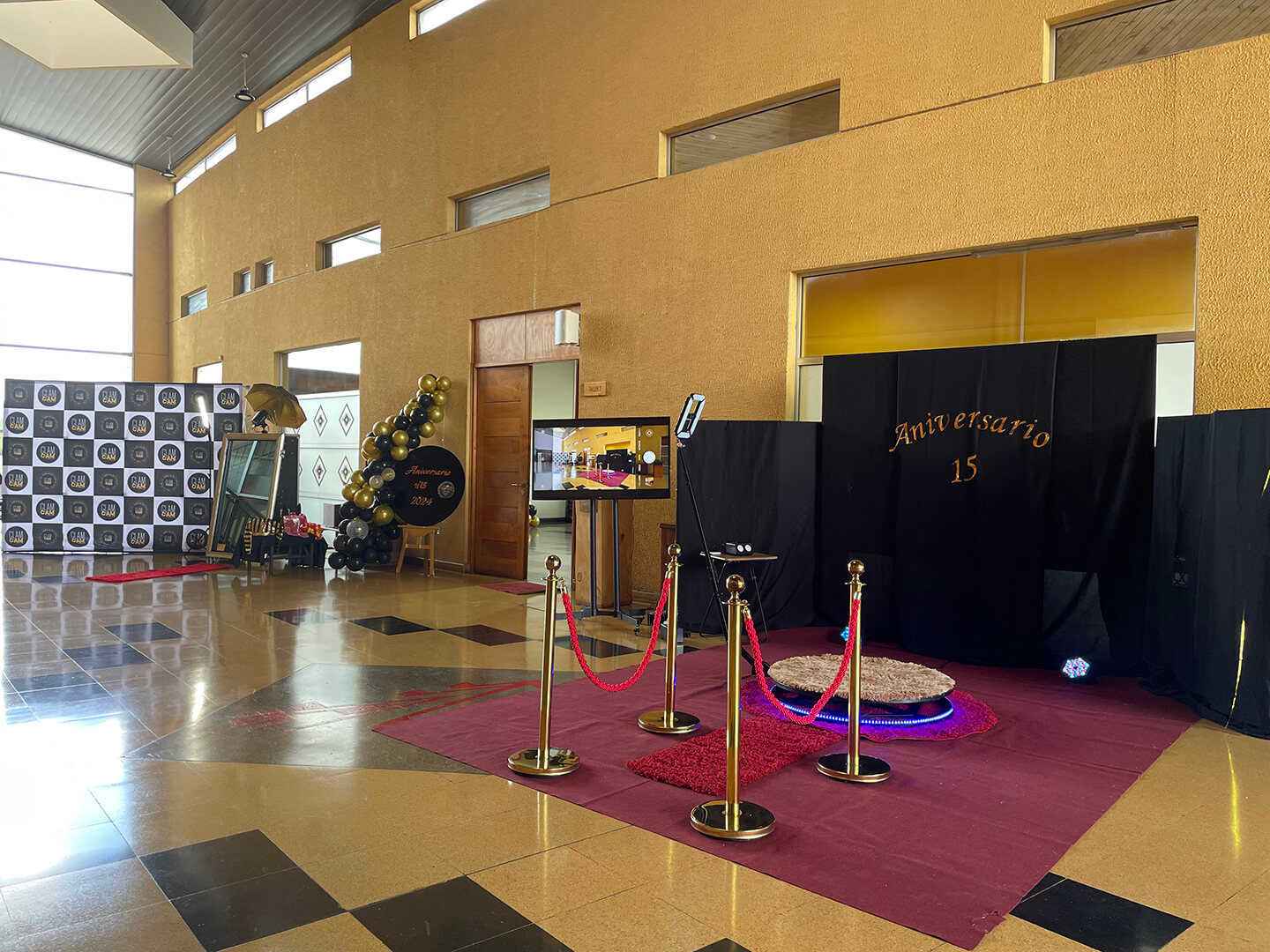 Espacio llamativo con música e iluminación, para tomarse fotos divertidas y personalizadas.